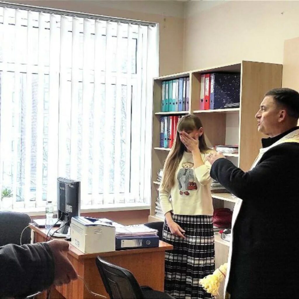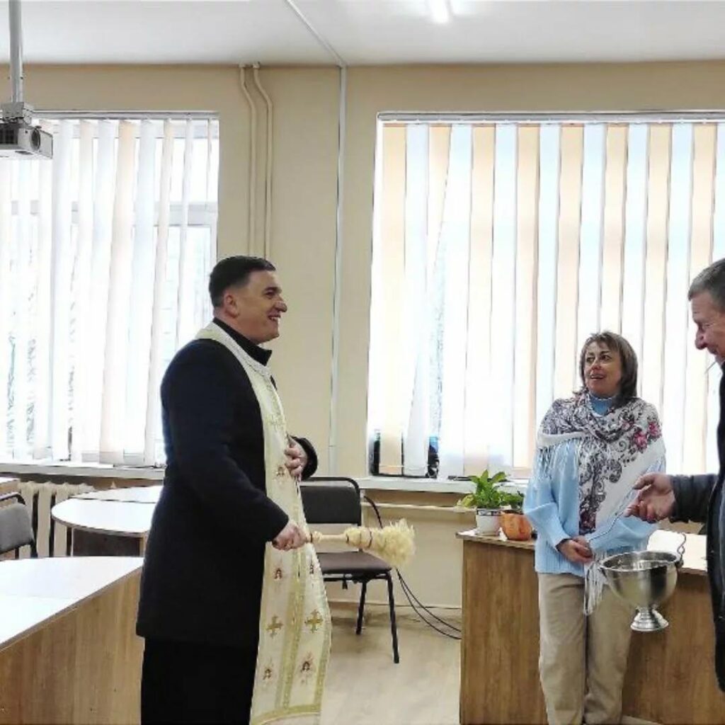 Опісля відбувся чин освячення приміщень навчального закладу. Отець окропив усіх присутніх свяченою водою, побажавши Божої опіки, миру, спокою душі, здоров’я 🕊️ та успіхів у праці 📚, а також закликав до щирого бажання жити за Божими заповідями, наголосивши на важливості духовних цінностей у сучасному світі ⛪.