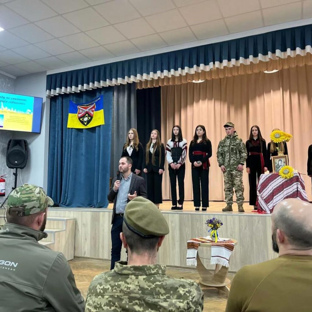 У другій частині вечора – пам’яті відбулася зустріч за круглим столом із воїном. який поділився історією власного бойового досвіду, для якого “бути Героєм” – це просто захищати життя від “руского міра”. Відповіддю на питання: що саме дає йому можливість триматися у страхітті війни? Було щире: “це сім’я, близькі, друзі, за яких воюю”.