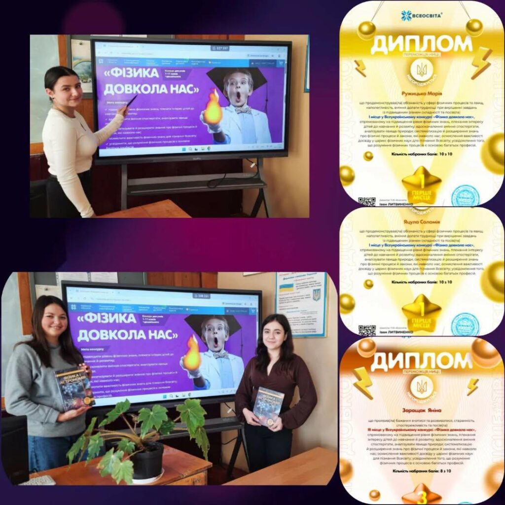 Здобувачі освіти ВПУ 29 м. Львова під керівництвом викладача Лесі Мазур взяли активну участь (34 учасники) у Всеукраїнській шкільній олімпіаді з фізики “Осінь-2025” (Just Class) та у конкурсі “Фізика довкола нас” на платформі ВСЕОСВІТА.🧑‍🔬👩‍🔬👨‍🔬